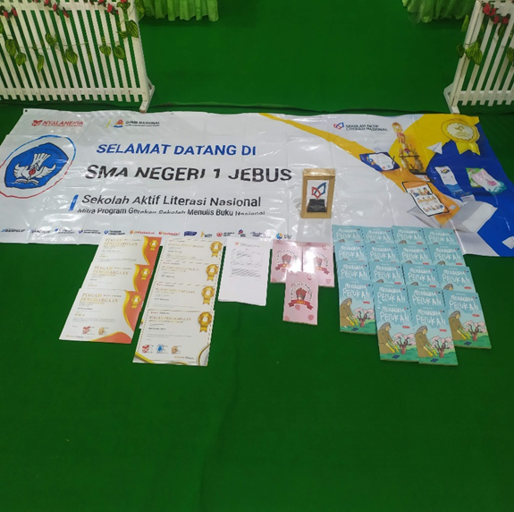 e). AMB akademisi Menulis Buku Juga Banyak SMAN 1 JEBUS ikuti dengan judul SAGUDUPA SASIDUPA. Yaitu Antologi Pantun. Hasil Karya Warga Sekolah, adalagi Antologi Quotes dan beberapa buku lainnya juga